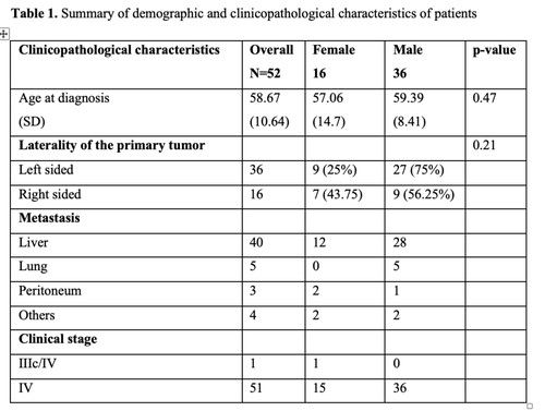 We collected formalin-fixed paraffin-embedded (FFPE) tumor tissues from 52 patients with metastatic CRCand analyzed the gene mutation profiles. We compared the results with individual patient's clinical histories and outcomes. Of 52patients with CRC,52(100%) identified as HL.