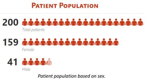We present data from 200 adult CIN patients, 159 females and 41 males [Figure 2] (79.5% and 20.5%, respectively), aged 19-90 years [Figure 3] (median 60 years), registered from one center that accepts patients from all over Greece. Seven patients were non-Greek white Europeans and 193 were Greeks. The median time from the initial identification of neutropenia until last follow-up was 179 months (range 12-420 months) and the median time of follow-up was 133 months (range 12-396 months). The patients had mean ANCs 1370±420/μL (median 1600, range 200-1700/μL), lymphocytes 1640±475/μL (median 1600, range 700-3700/μL), monocytes 336±134/μL (median 300, range 100-800/μL), platelets 221±48 x103/μl (median 219, range 150-336 x103/μl) [Figure 4], haemoglobin 13.3±0.99 g/dL (median 13.25, range 10.6-16.5 g/dL) and MCV 88.15±5.76 fl (median 89, range 63.4-98.1 fl). Clonal hemopoiesis in NGS analysis was identified in 40 patients (20%) and these patients were further characterized as cases with clonal cytopenia of undetermined significance (CCUS). The most frequently mutated genes were DNMT3A and TET2 involving more than 50% of CCUS patients followed by BCOR/BCORL1, IDH1/2, ASXL1, SRSF2, TP53, WT1 [Figure 5][Figure 6]. Five patients (2.5%) were homozygous for the DARC/ACKR1 SNP rs2814778. Overall, five patients transformed into MDS/AML, four from the CCUS and one from the non-clonal group (P<0.0001) with a relative risk 20 for transformation in the presence of clonal disease [Figure 7]. Nine patients developed a non-hematologic malignancy, three from the CCUS and six from the non-clonal group (non-significant difference) [Figure 8]. The patients had rare infections and only one patient presented a mild covid-19 infection so far.